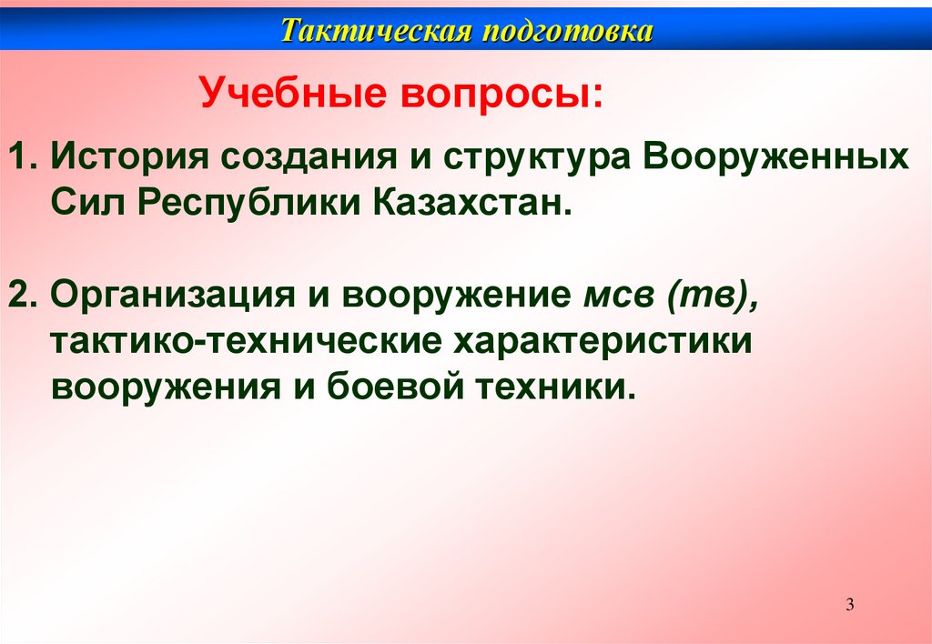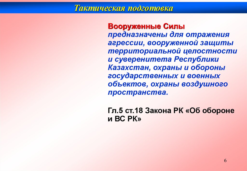 Тема 1: «Вооруженные Силы Республики Казахстан,