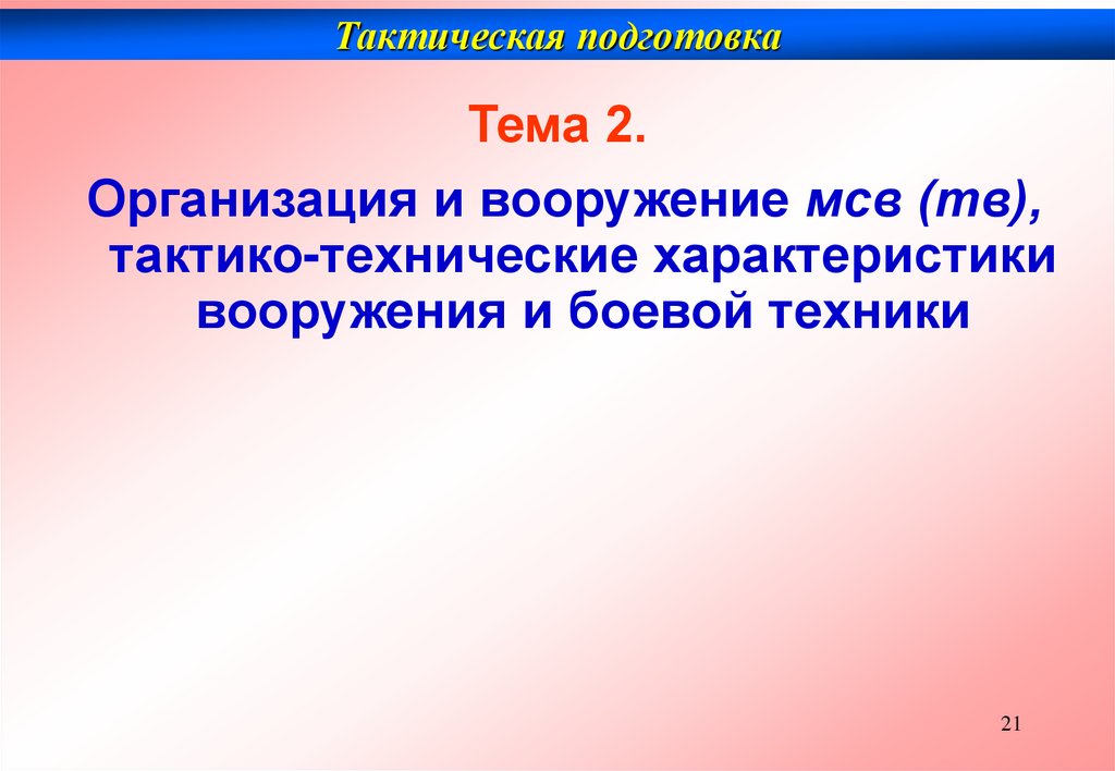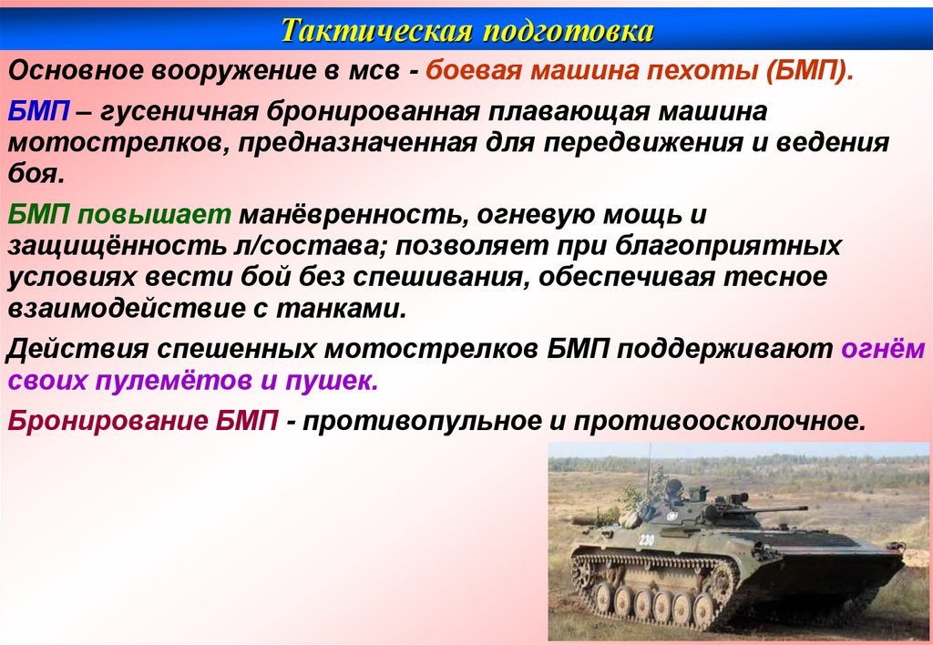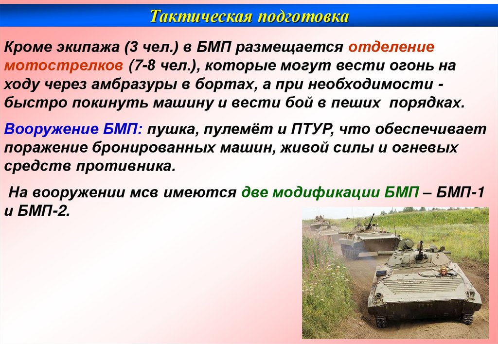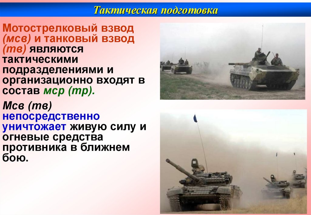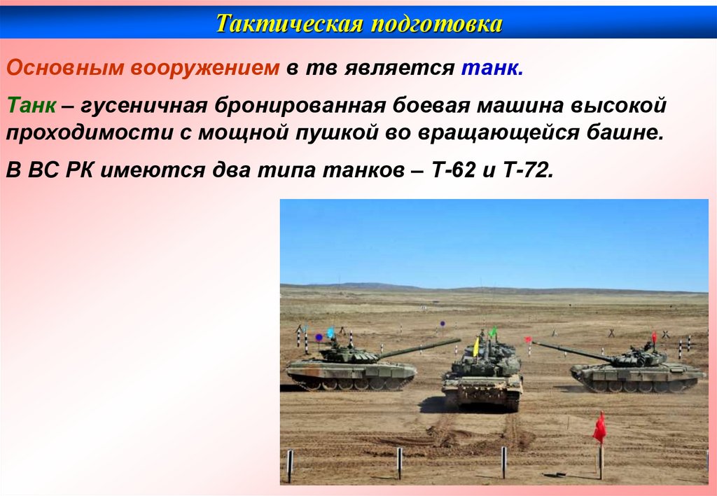 Тактическая подготовкаОсновным вооружением в тв является танк.