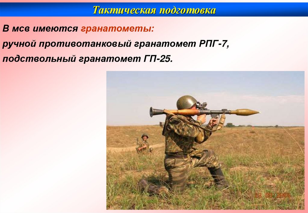 Тактическая подготовкаВ мсв имеются гранатометы: