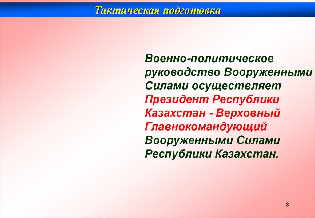 Тактическая подготовкаВысшим военно-политическим органом руководства