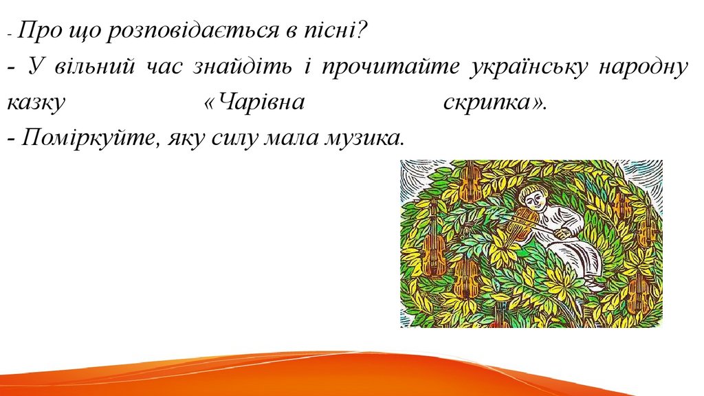 Про що розповідається в пісні?- У вільний час знайдіть і прочитайте українську народну