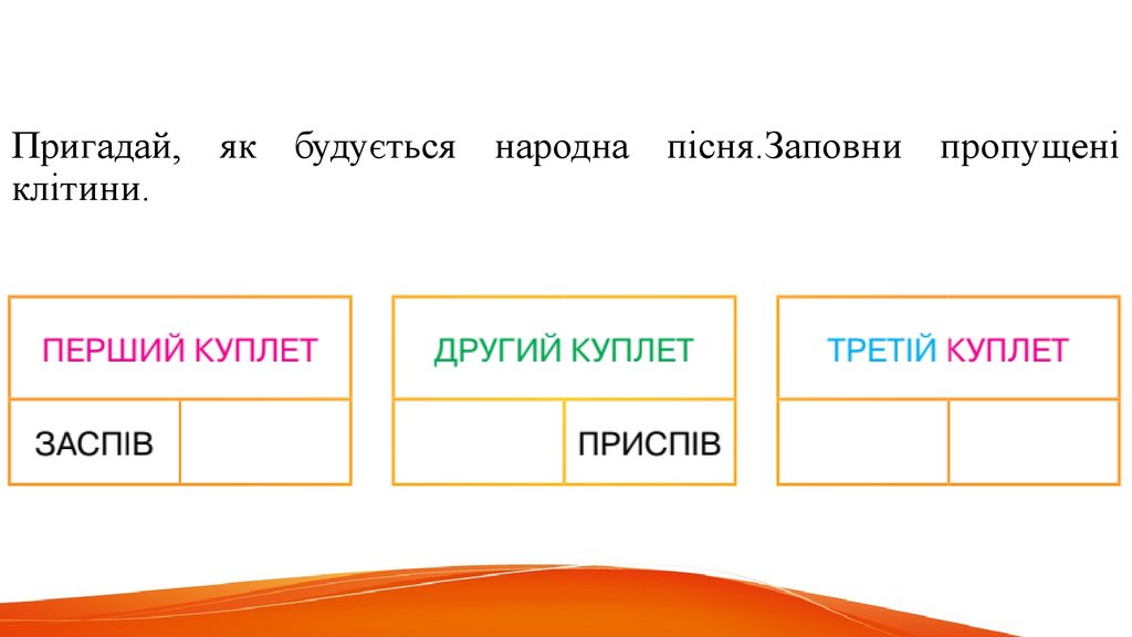 Пригадай, як будується народна пісня.Заповни пропущеніклітини.