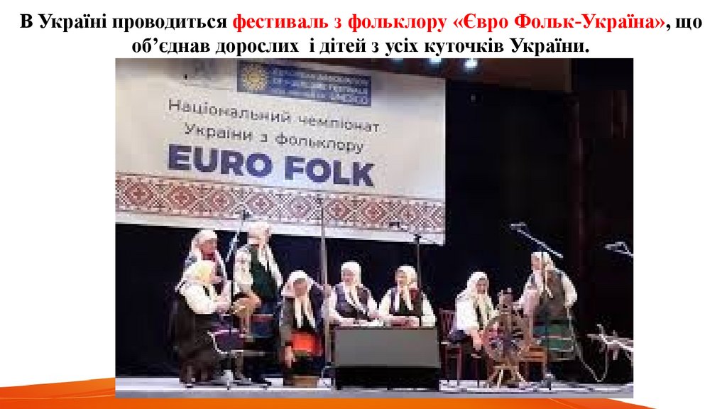 В Україні проводиться фестиваль з фольклору «Євро Фольк-Україна», щооб’єднав дорослих і дітей з усіх куточків України.