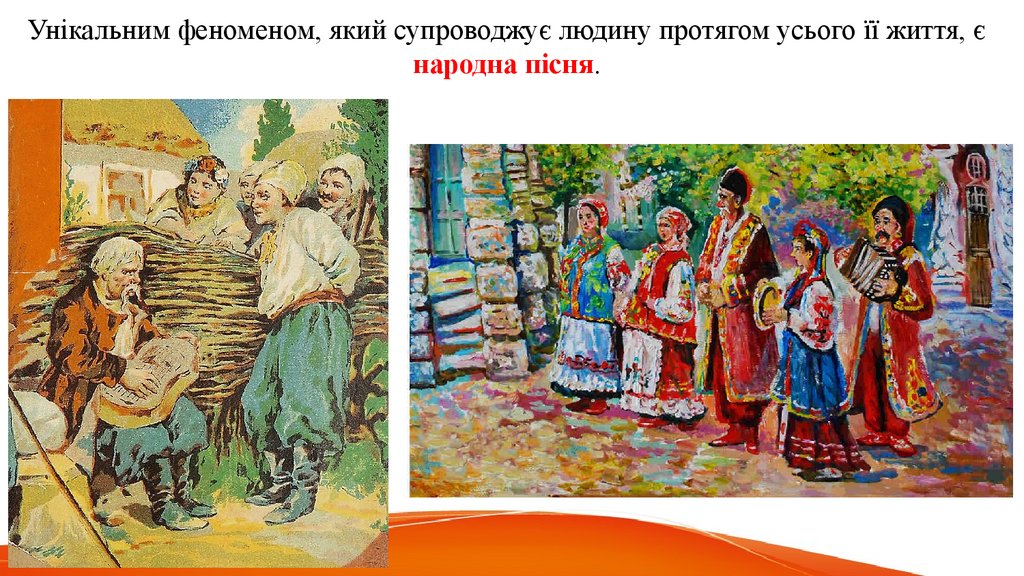 Унікальним феноменом, який супроводжує людину протягом усього її життя, єнародна пісня.