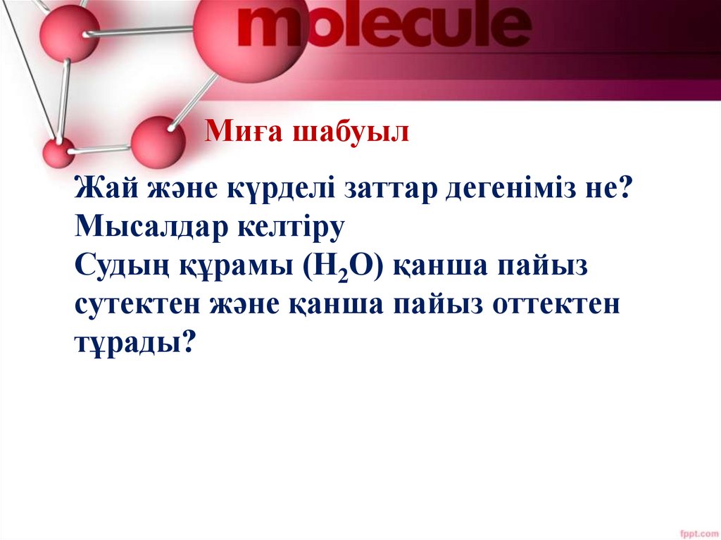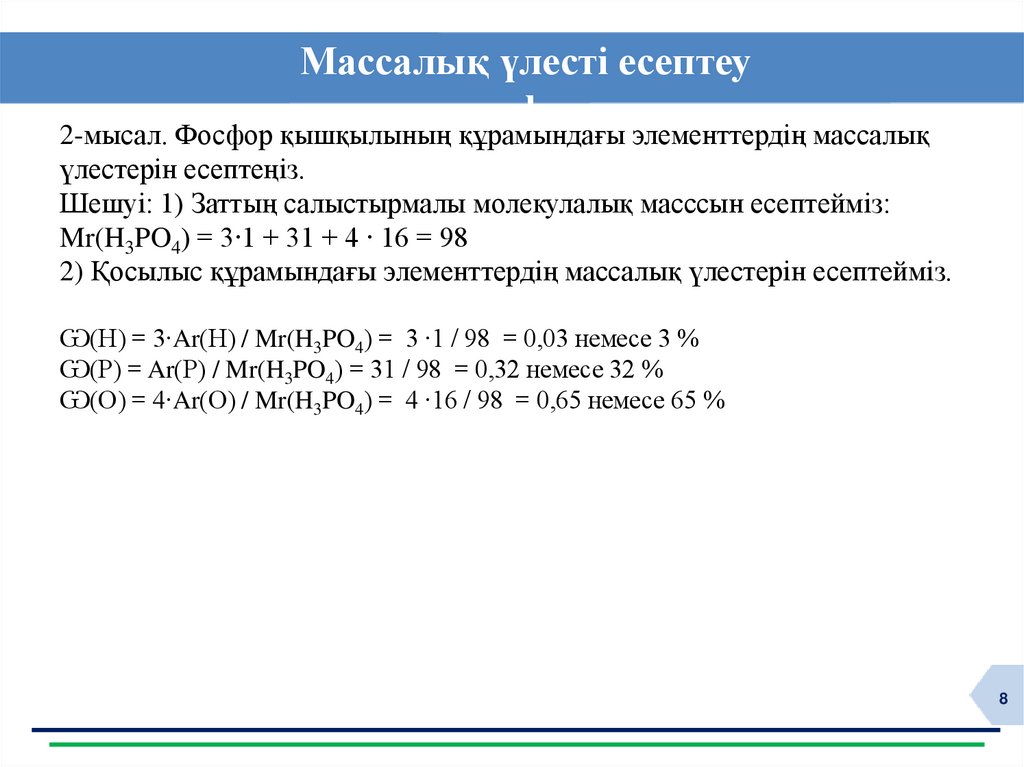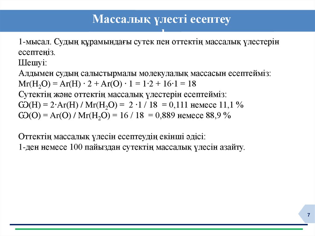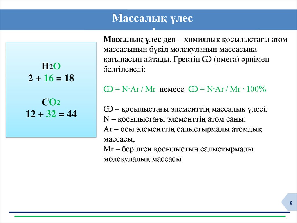 1. Қосылыстардағы элементтердің массалық үлесін анықтау. 6-сабақ
