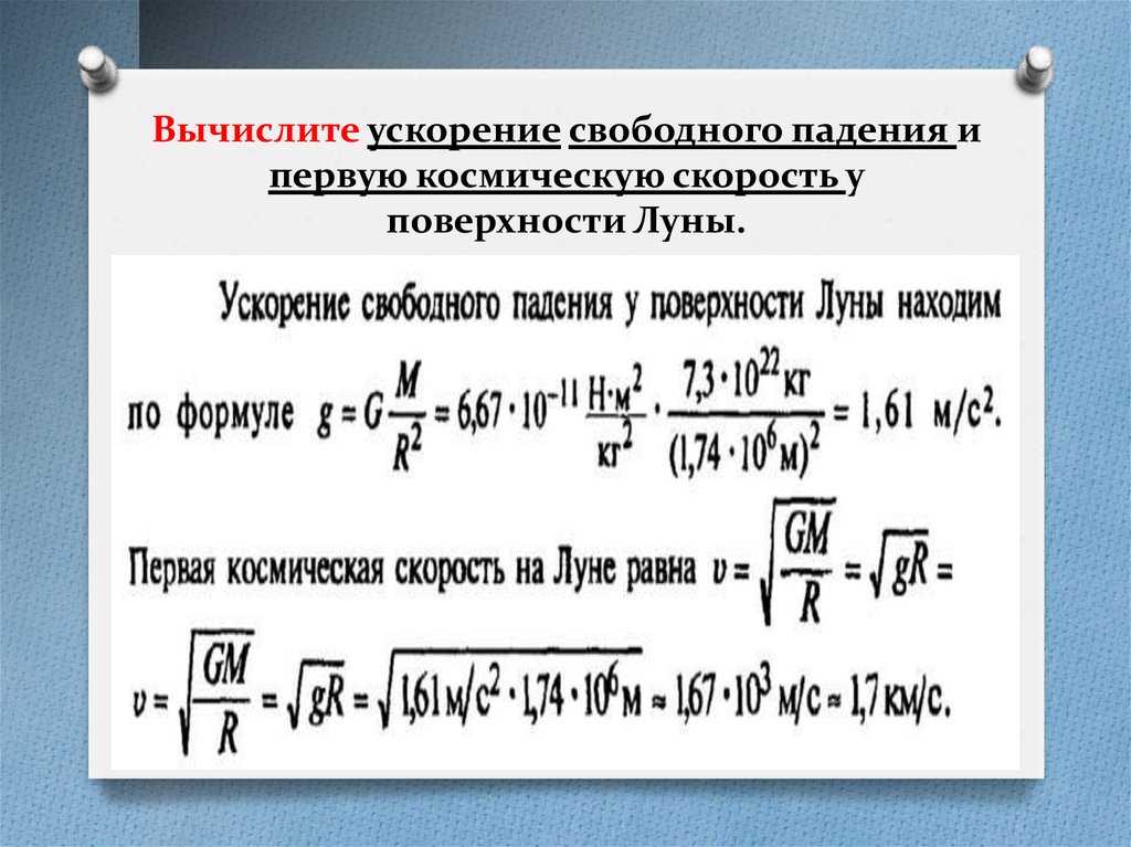 Вычислите ускорение свободного падения ипервую космическую скорость у