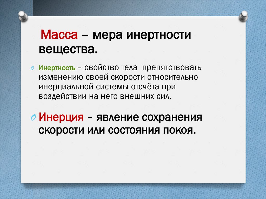 Масса – мера инертностивещества.