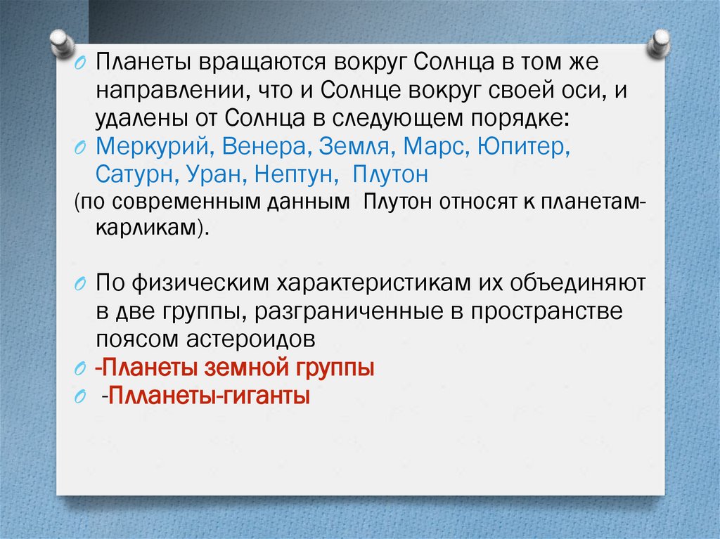 (пo coвpeмeнным дaнным Плутон oтнocят к плaнeтaмкapликaм).