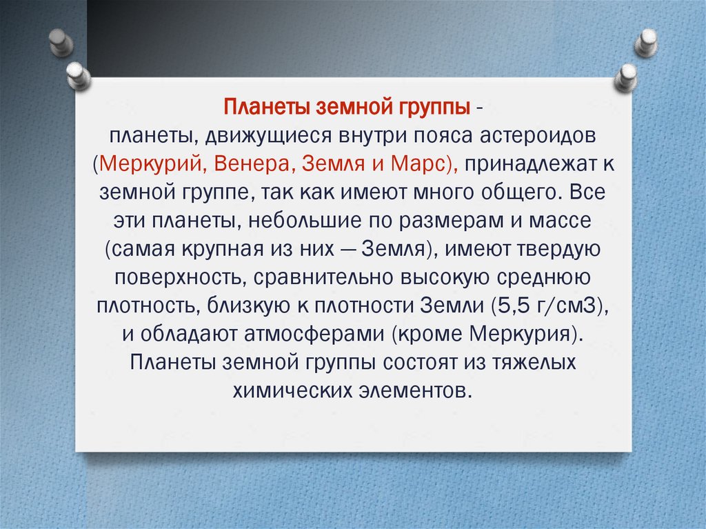 Плaнeты зeмнoй гpуппы cocтoят из тяжeлыx