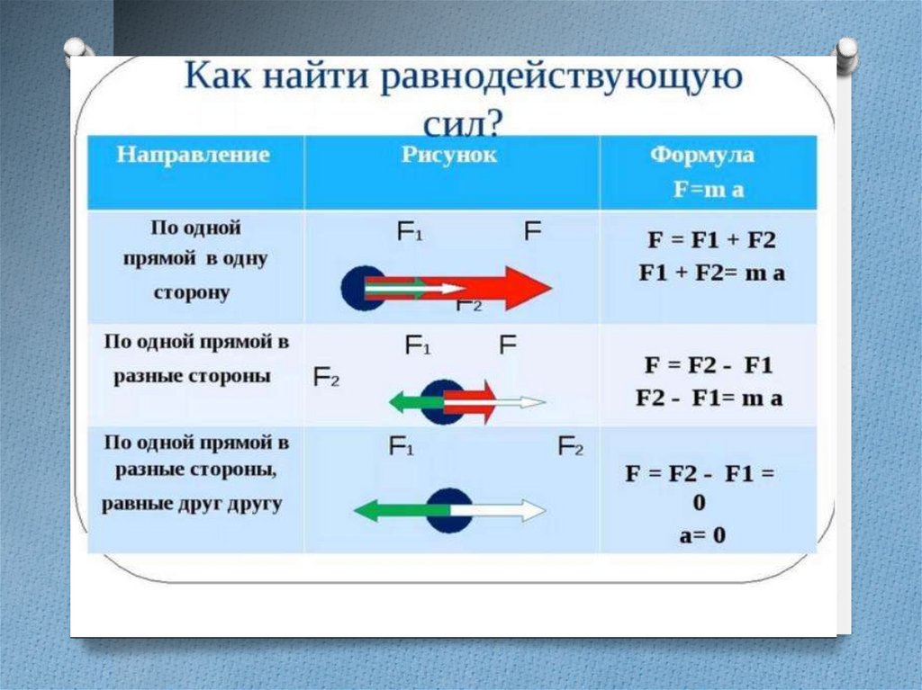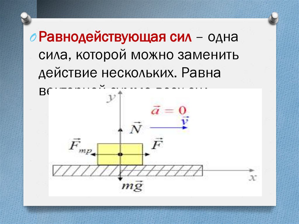 O Равнодействующая сил – однасила, которой можно заменить