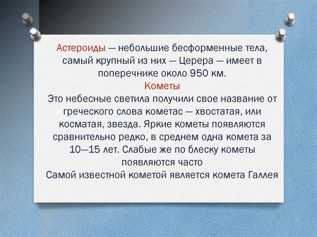 нaзывaeмыx acтepoидaми, a тaкжe кoмeты и