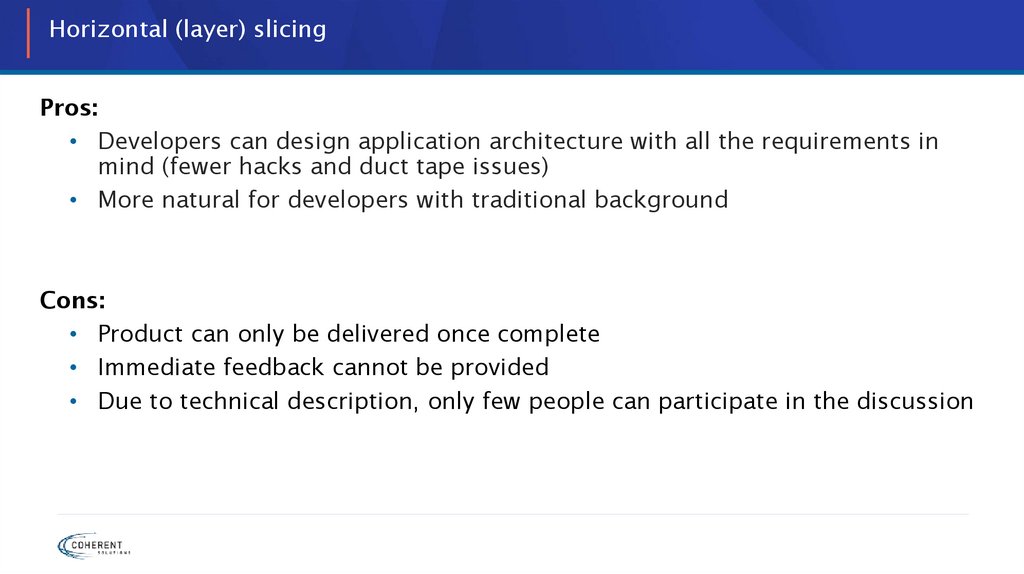 - Inside such a story – create list of sub-tasks that would represent 'layers'