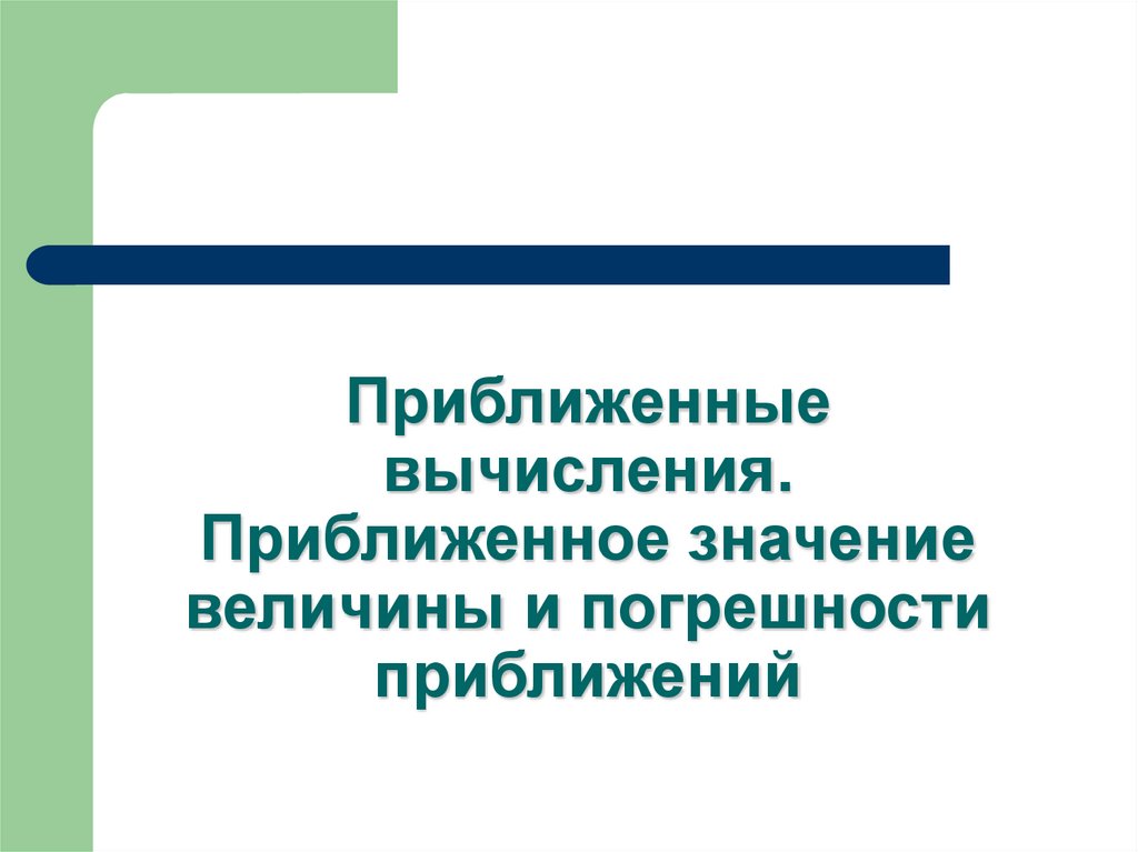 Приближенные вычисления. Приближенное значение величины и погрешности приближений
