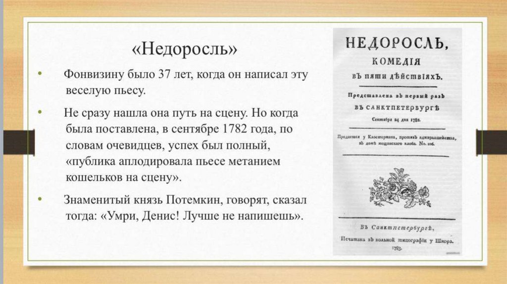 Денис Иванович Фонвизин (1745-1792). Комедия «Недоросль»