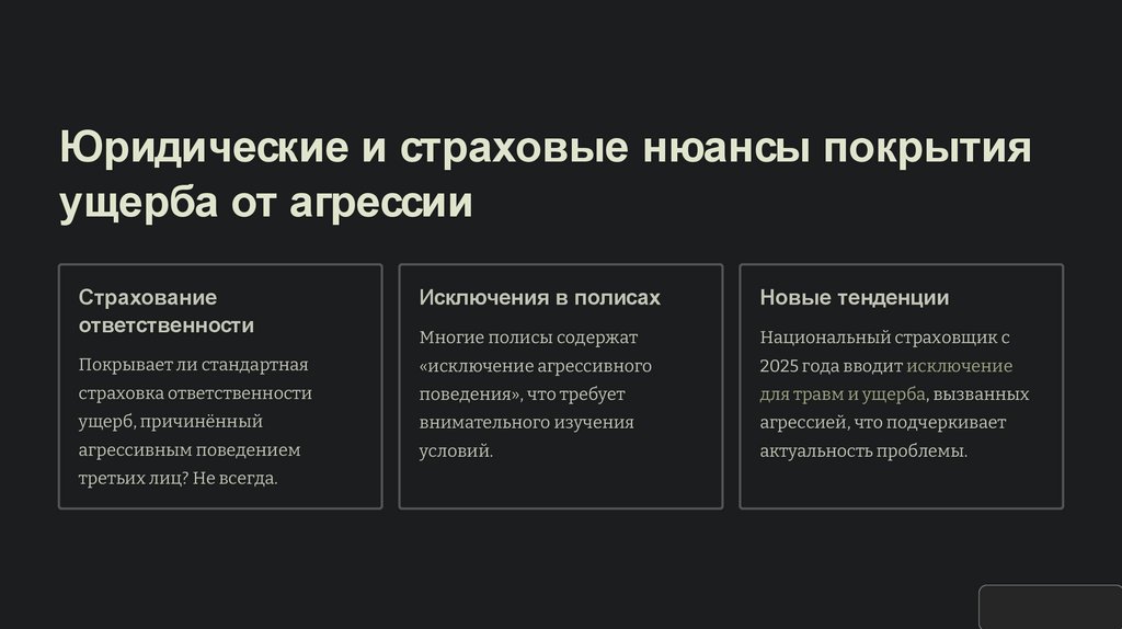 Юридические и страховые нюансы покрытияущерба от агрессии