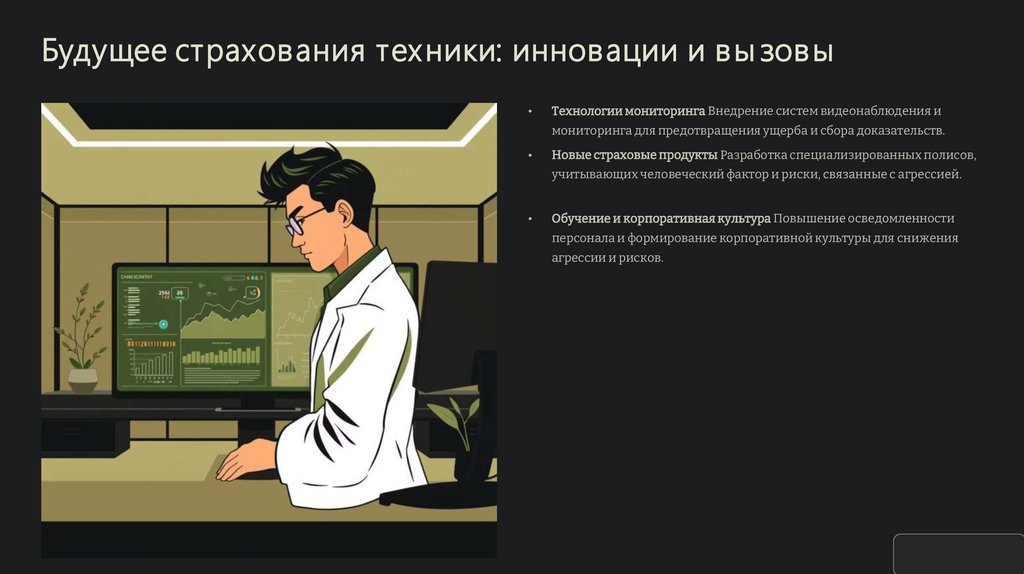 Будущее страхования тех ники: инновации и в ы зов ыТехнологии мониторинга Внедрение систем видеонаблюдения и