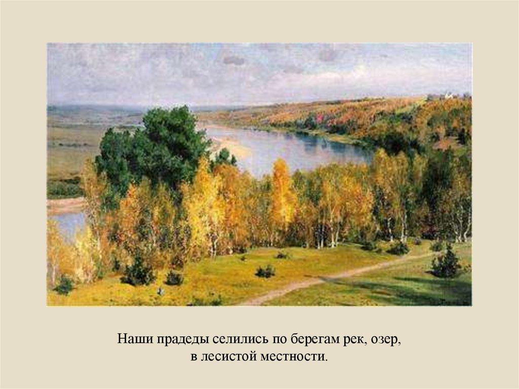 Наши прадеды селились по берегам рек, озер,в лесистой местности.
