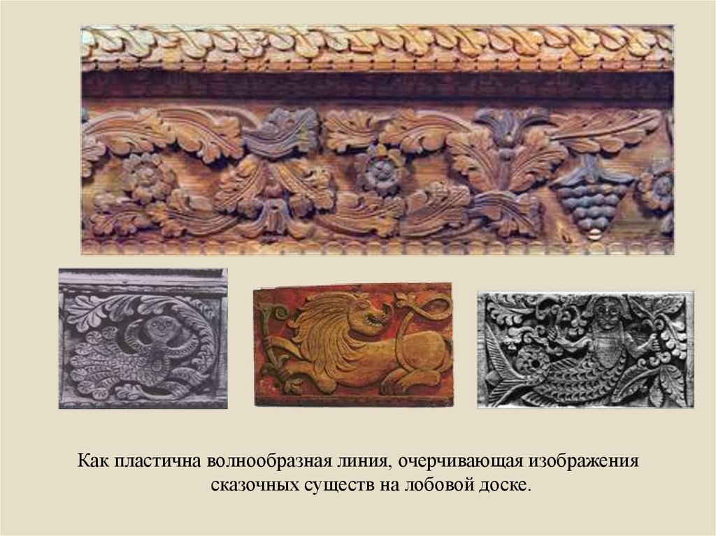 Как пластична волнообразная линия, очерчивающая изображениясказочных существ на лобовой доске.