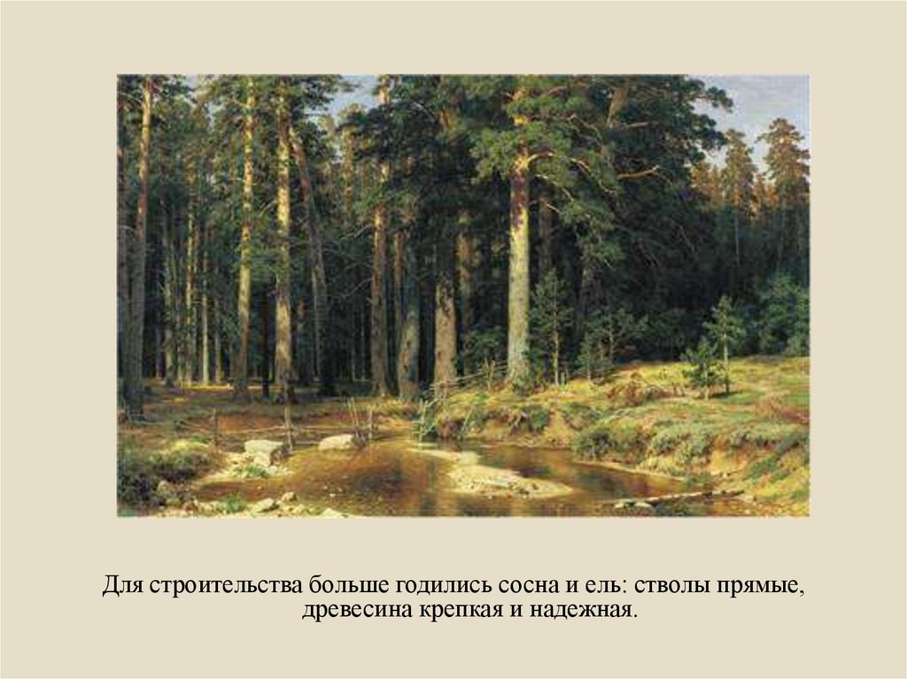 Для строительства больше годились сосна и ель: стволы прямые,древесина крепкая и надежная.