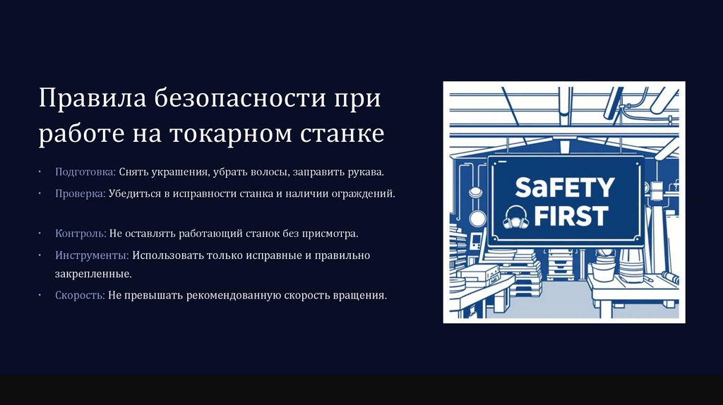 Проверка: Убедиться в исправности станка и наличии ограждений.