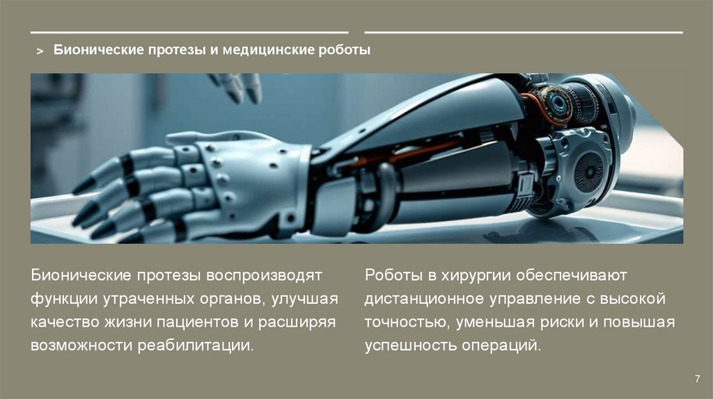 Бионические протезы и медицинские роботыБионические протезы воспроизводят