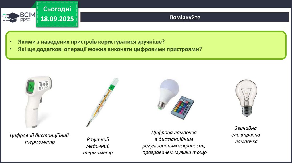 пристрої й отримали назву «цифрові». Приклади цифрових і нецифрових пристроїв для