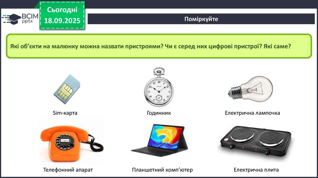 Які об’єкти на малюнку можна назвати пристроями? Чи є серед них цифрові пристрої? Які саме?