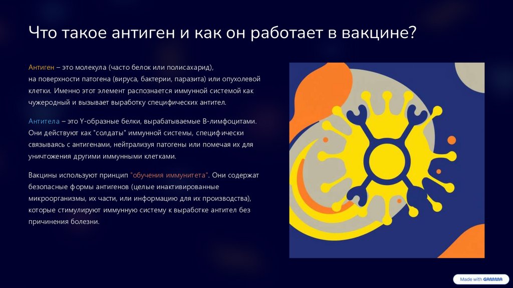 Что такое антиген и как он работает в вакцине?Антиген – это молекула (часто белок или полисахарид),