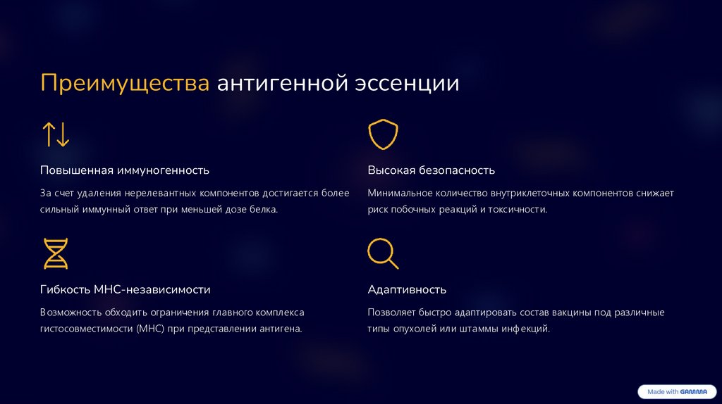 Преимущества антигенной эссенцииПовышенная иммуногенность
