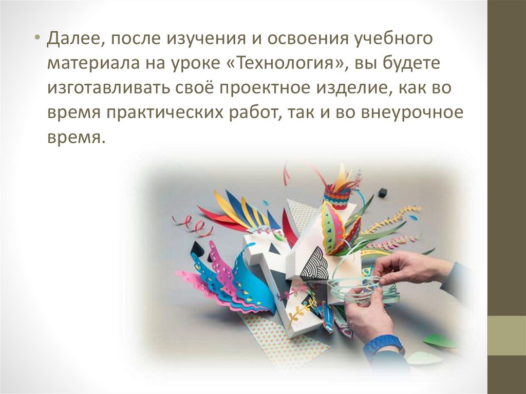 • Далее, после изучения и освоения учебногоматериала на уроке «Технология», вы будете