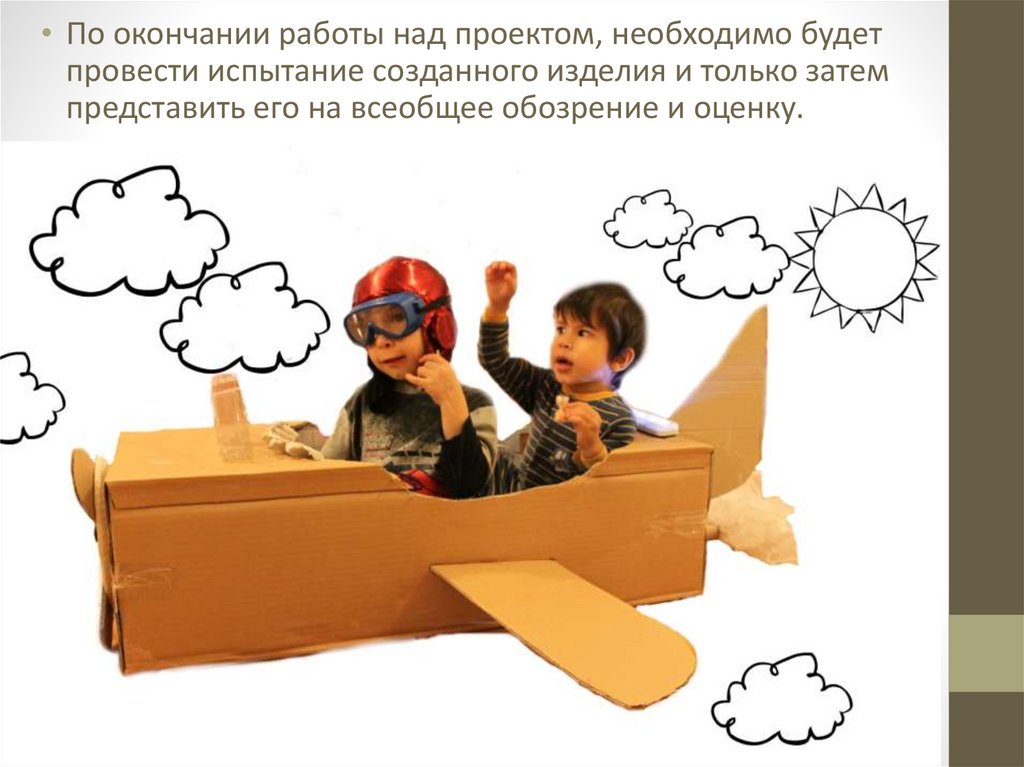 • По окончании работы над проектом, необходимо будетпровести испытание созданного изделия и только затем