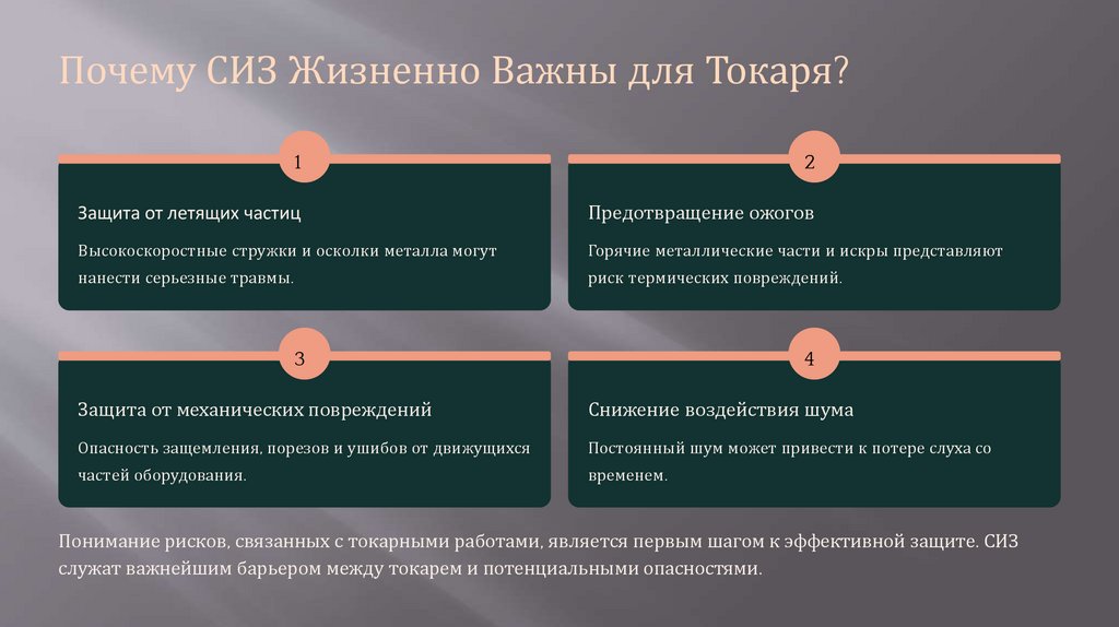 Понимание рисков, связанных с токарными работами, является первым шагом к эффективной защите. СИЗ