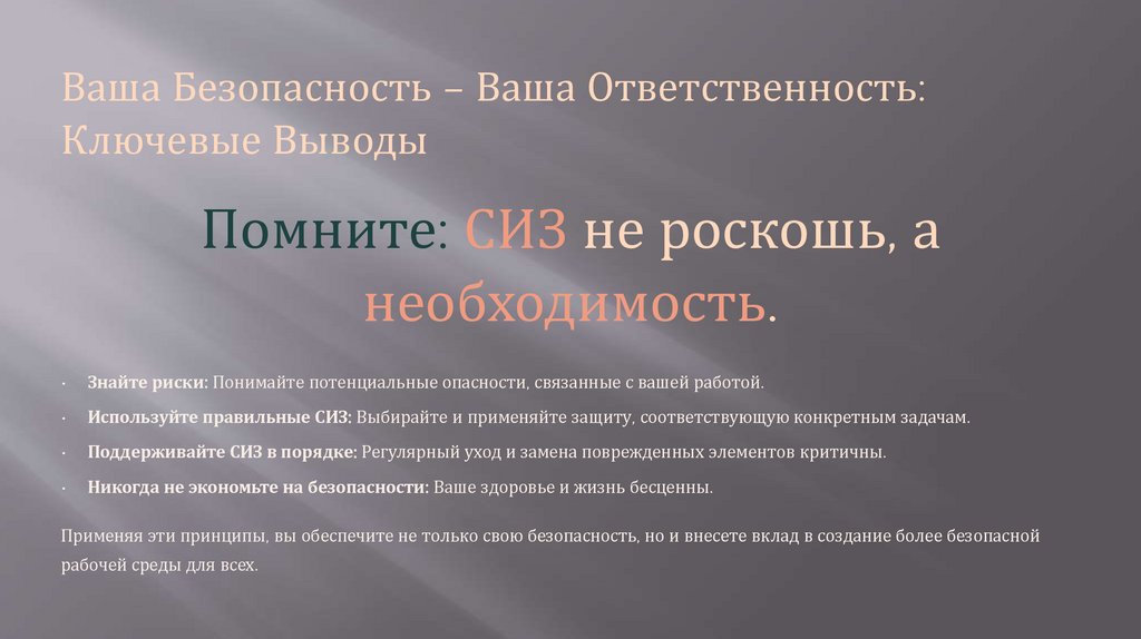 Используйте правильные СИЗ: Выбирайте и применяйте защиту, соответствующую конкретным задачам.