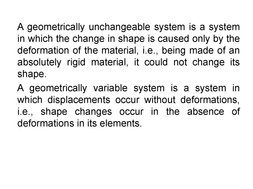 A geometrically unchangeable system is a systemin which the change in shape is caused only by the