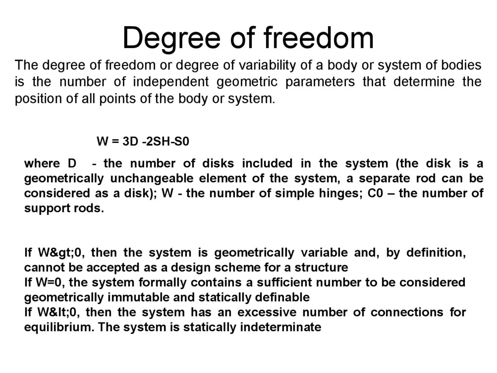 Degree of freedomThe degree of freedom or degree of variability of a body or system of bodies