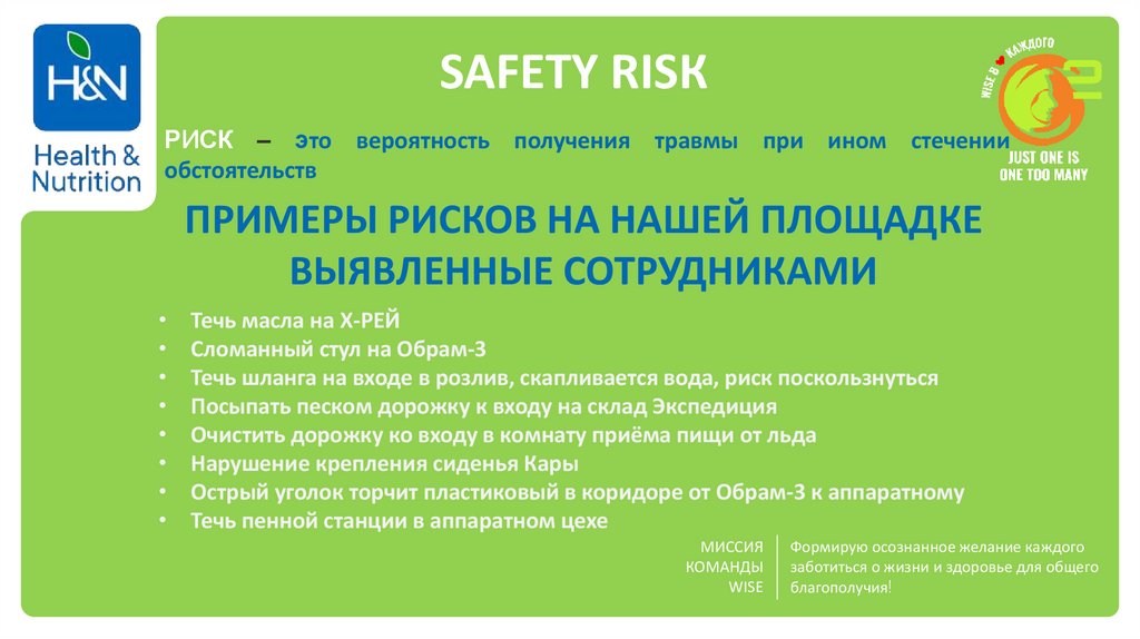 SAFETY RISК• РИСК – это вероятность получения травмы при ином стечении