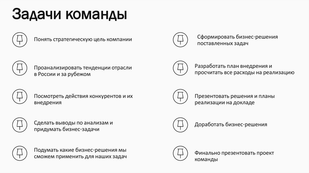 Задачи командыПонять стратегическую цель компании