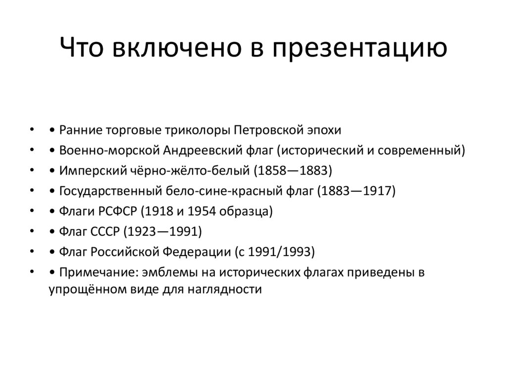 Что включено в презентацию• Ранние торговые триколоры Петровской эпохи