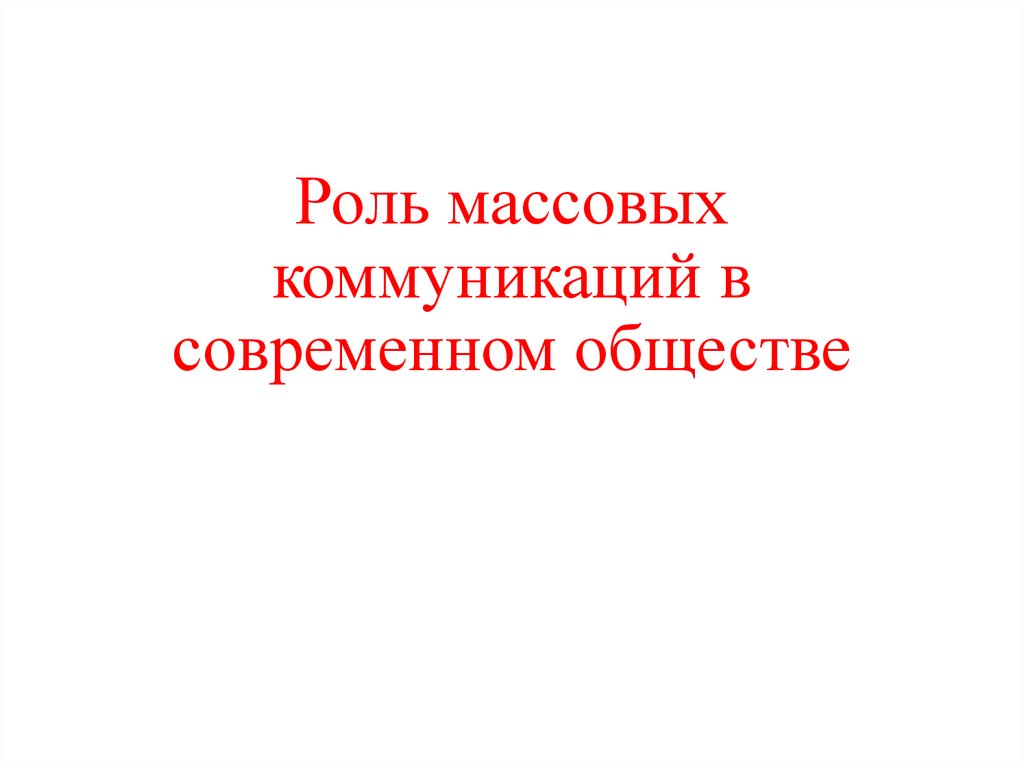 Роль массовых коммуникаций в современном обществе
