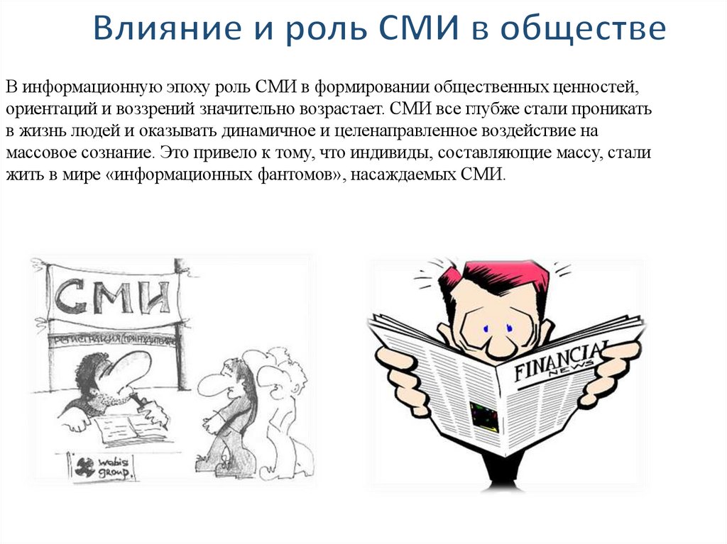 В информационную эпоху роль СМИ в формировании общественных ценностей,ориентаций и воззрений значительно возрастает. СМИ все глубже стали проникать