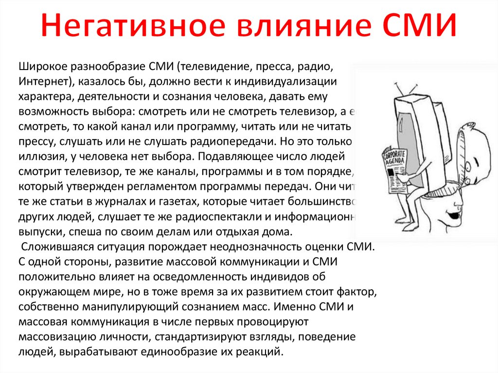 Широкое разнообразие СМИ (телевидение, пресса, радио,Интернет), казалось бы, должно вести к индивидуализации