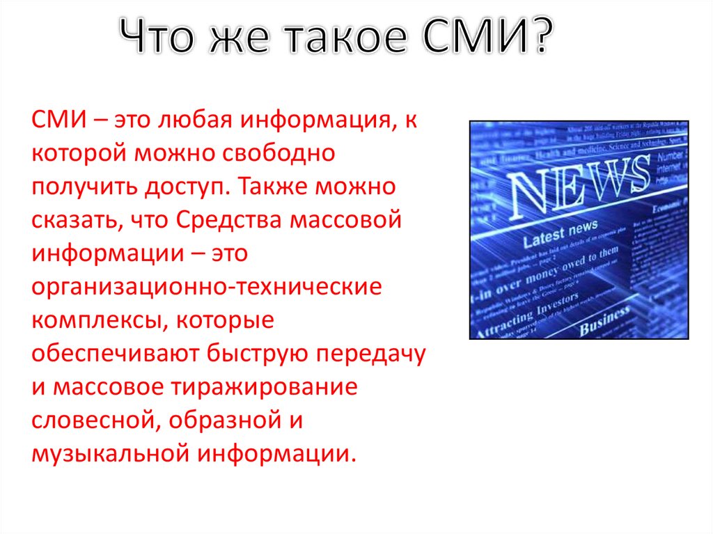 СМИ – это любая информация, ккоторой можно свободно