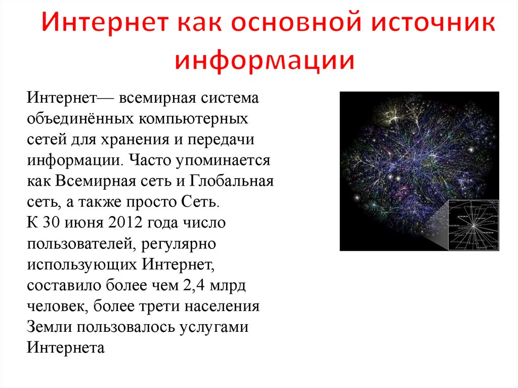 Интернет— всемирная системаобъединённых компьютерных