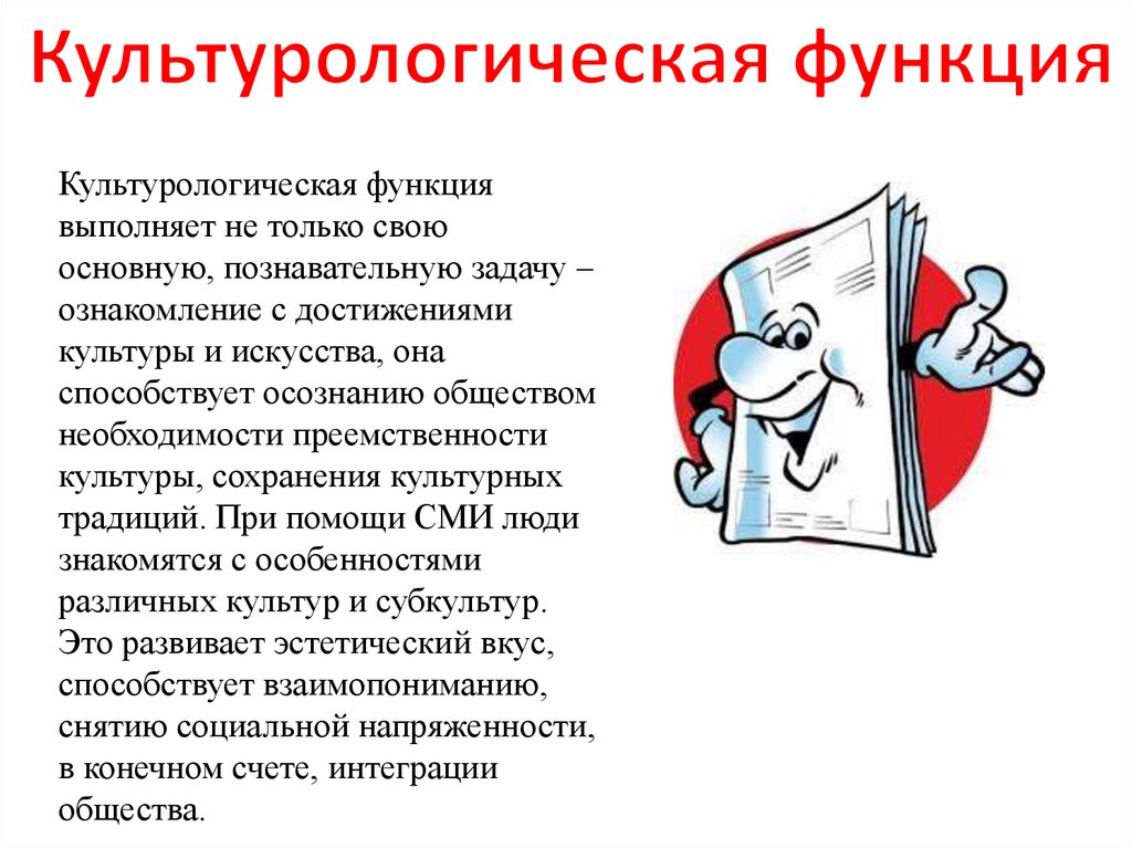 Культурологическая функциявыполняет не только свою