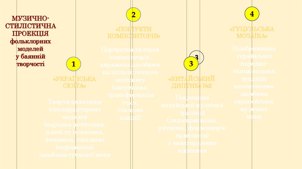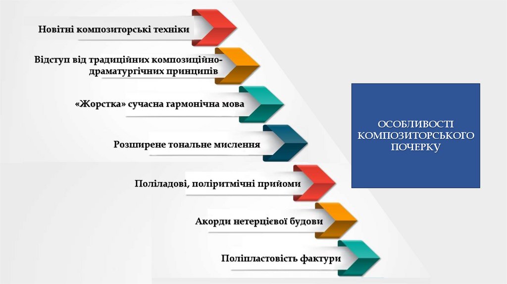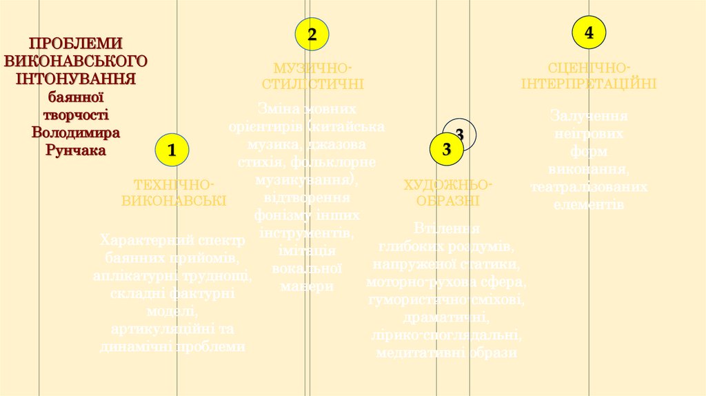 • Технічно-виконавські, музично-стилістичні, художньо-образні