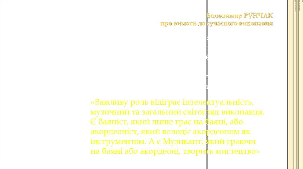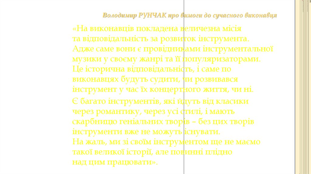 Володимир РУНЧАКпро вимоги до сучасного виконавця