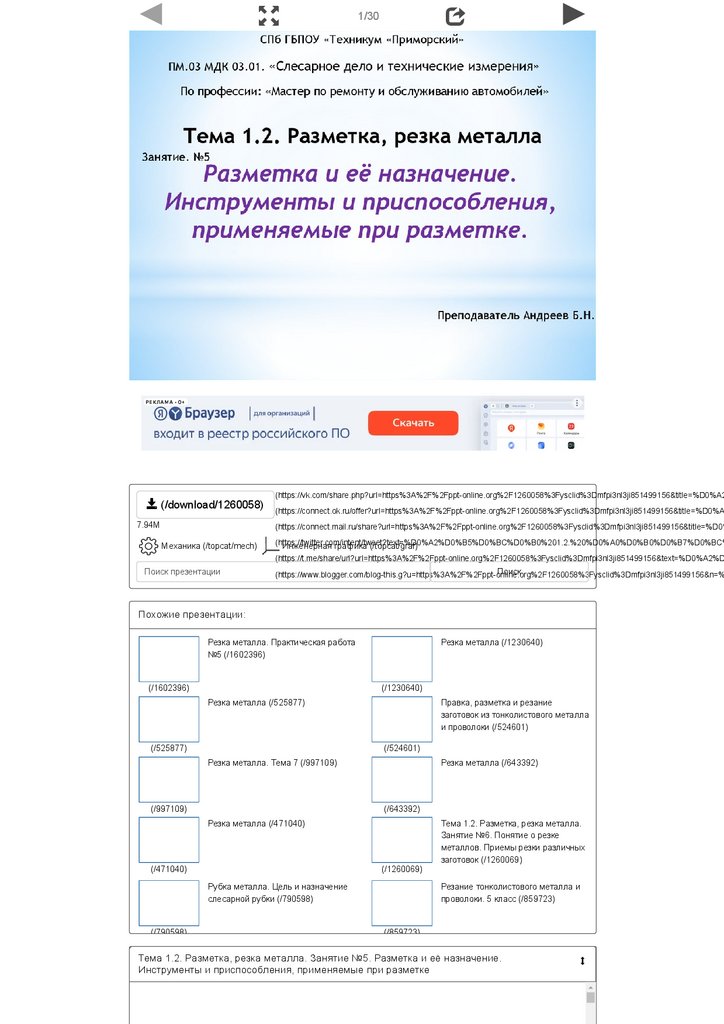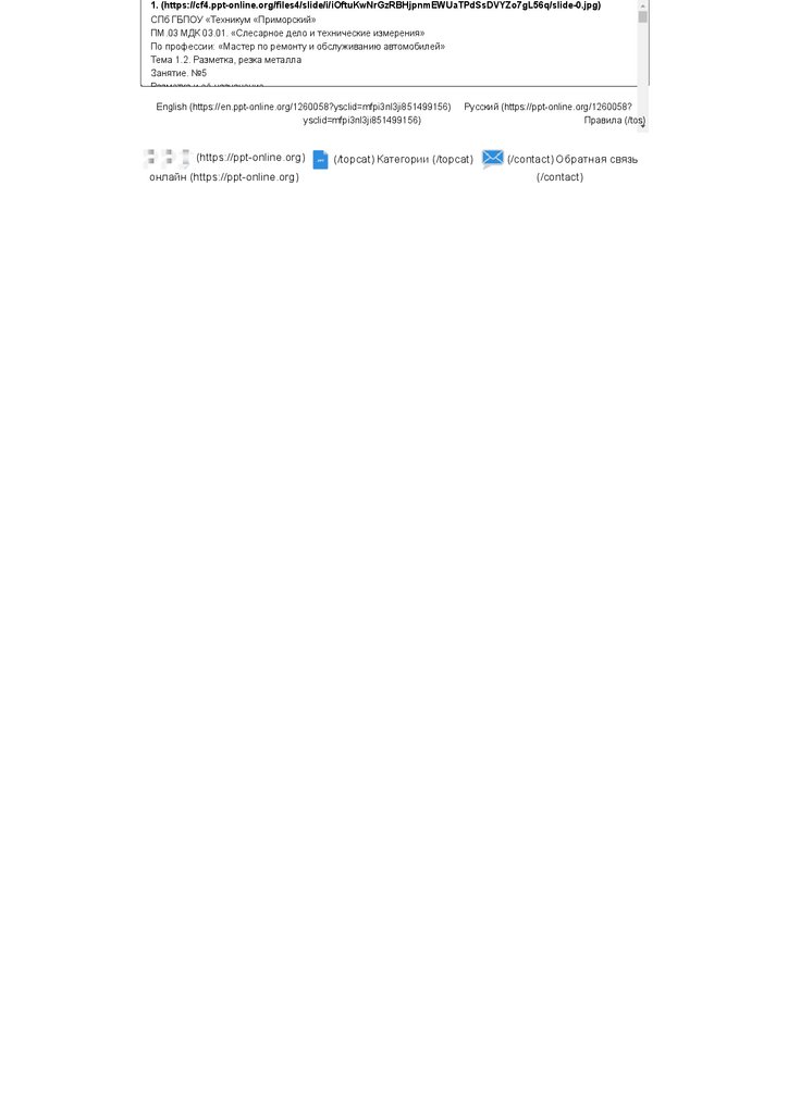 Тема 1.2. Разметка, резка металла. Занятие №5. Разметка и её назначение