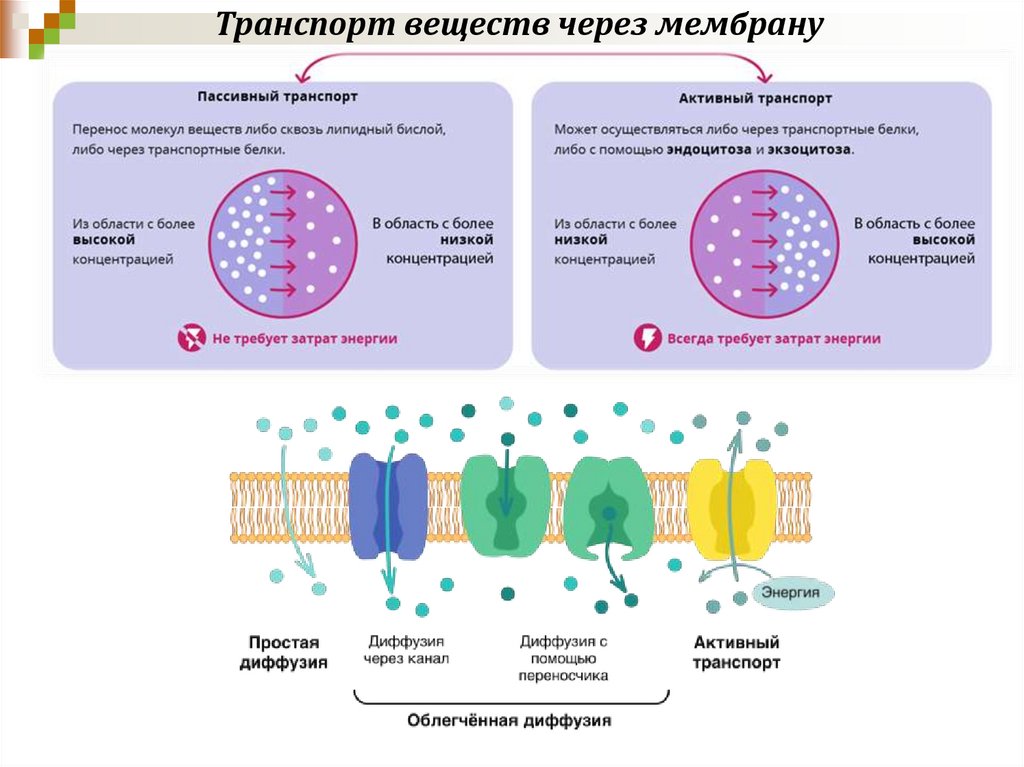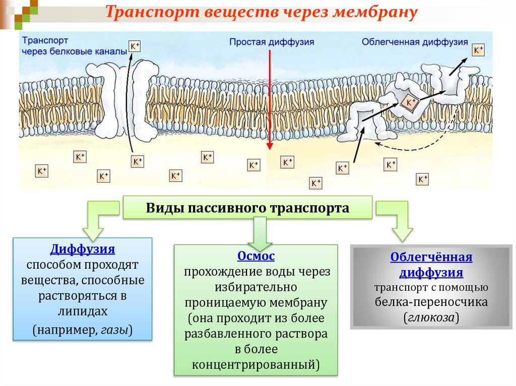 Транспорт веществ через мембрануВиды пассивного транспорта