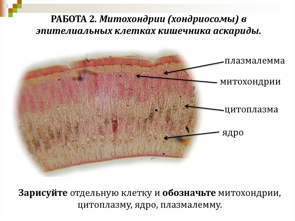 РАБОТА 2. Митохондрии (хондриосомы) вэпителиальных клетках кишечника аскариды.