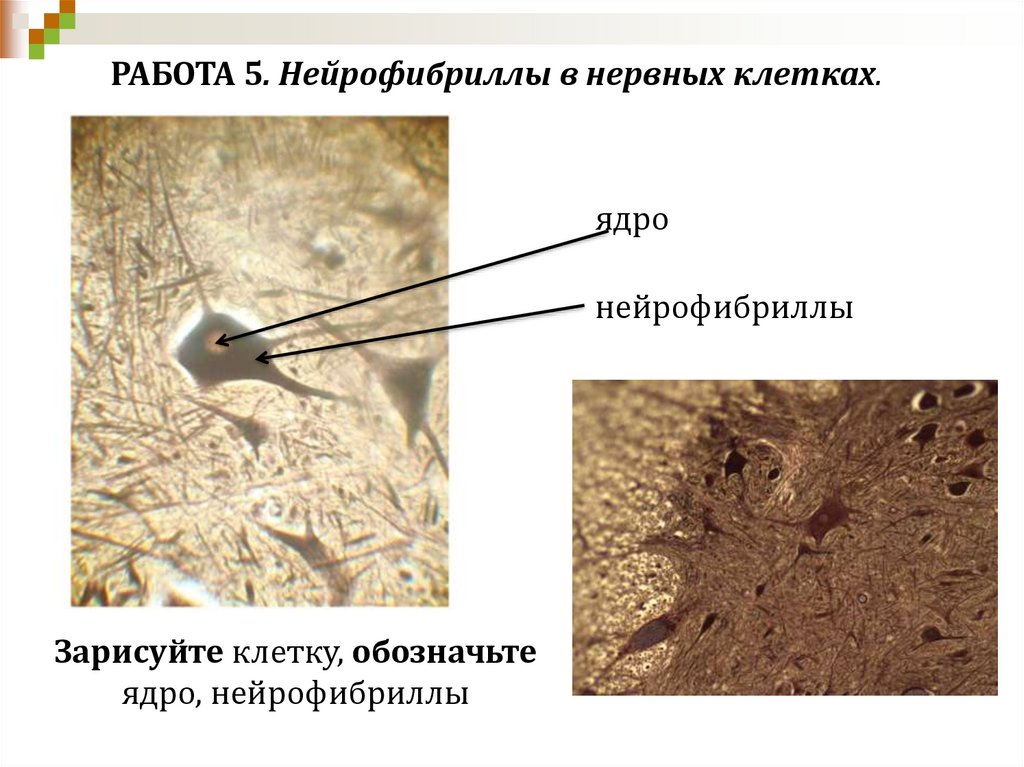 РАБОТА 5. Нейрофибриллы в нервных клетках.ядро